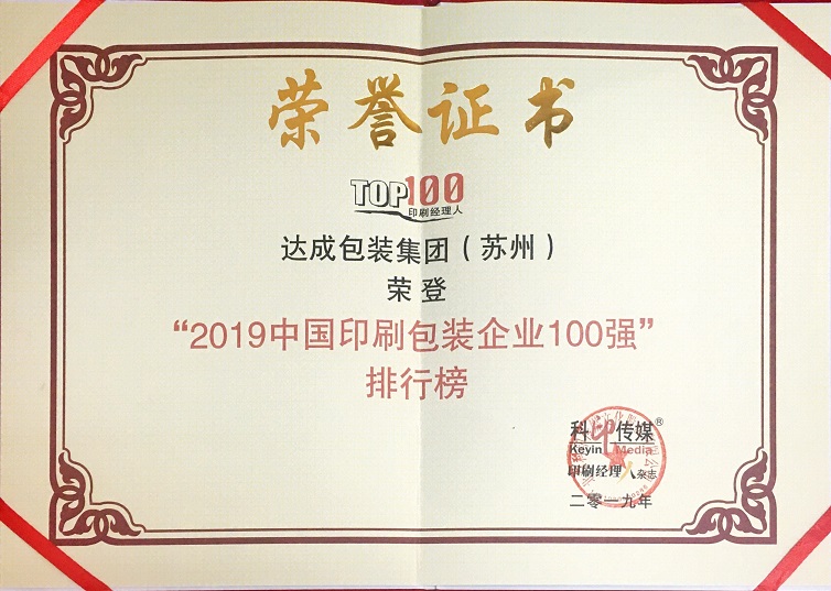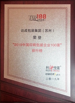 公司荣获中国印刷包装企业100强
