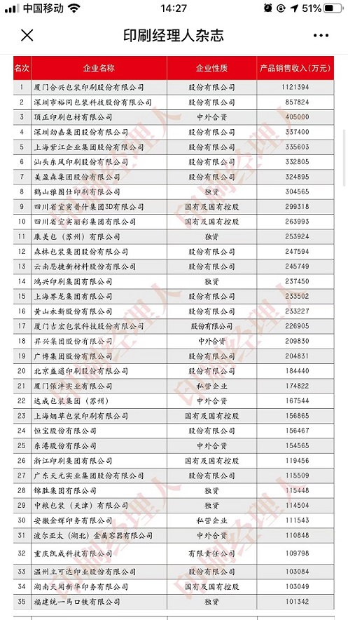 中国印刷包装企业